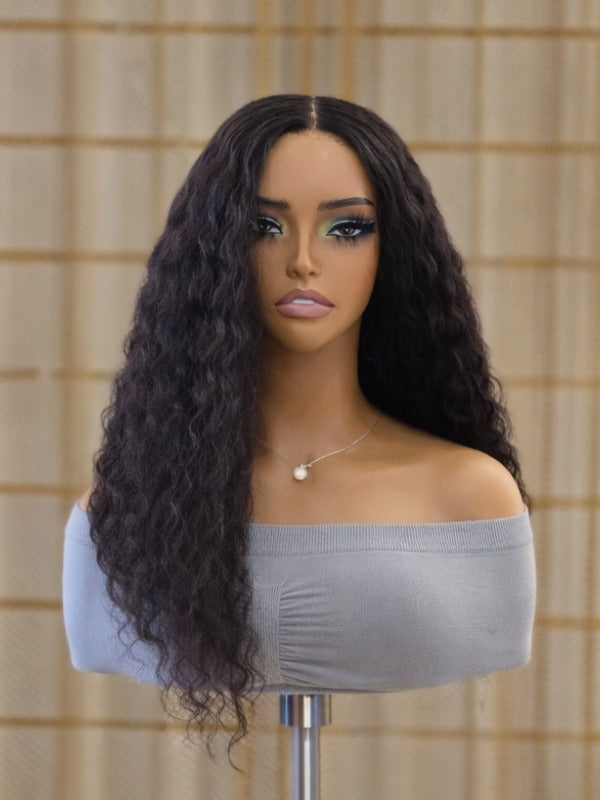Designed for the modern woman, this perfect "Ready To Go Convenience" solution boasts a captivating Deep Wave texture in a rich Jet Black hue, paired with the superior transparency of 5x5 Swiss HD Lace. Its Pre-Cut Lace Design (for glueless wear) and Invisible Knots ensure a truly undetectable hairline that blends seamlessly, making it your go-to for a natural yet striking transformation with beautifully defined curls.