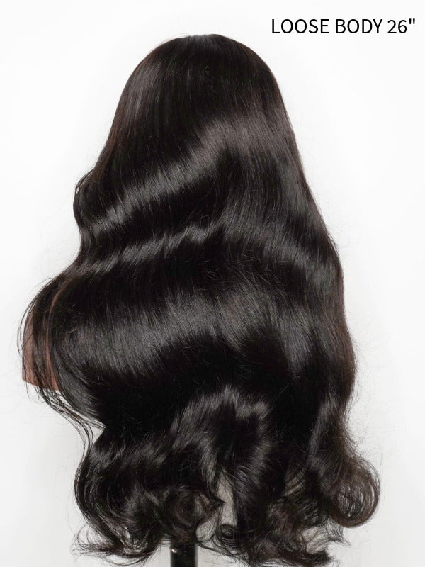 Lush Natural Loose Body Wave Texture: Indulge in the vibrant bounce, luscious volume, and dynamic movement of this popular texture, perfect for a striking and elegant look.