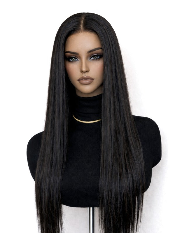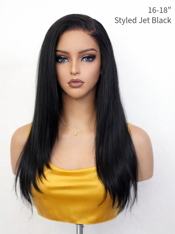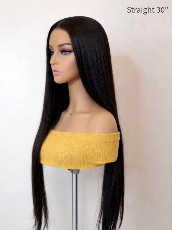 Discover effortless, natural beauty. Shop our Silky Straight Glueless Wig 5x5 Swiss HD Pre-Cut Lace (Invisible Knots, 180% Density) today!