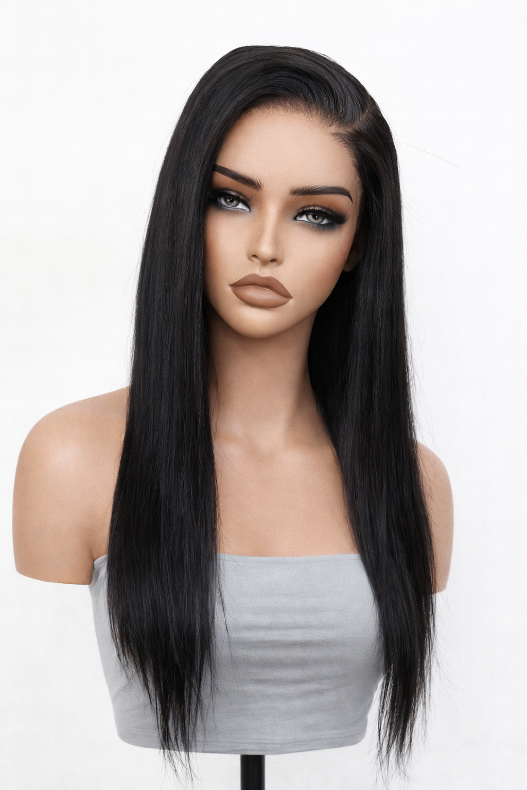 Discover effortless, natural beauty. Shop our Silky Straight Glueless Wig 5x5 Swiss HD Pre-Cut Lace (Invisible Knots, 180% Density) today!