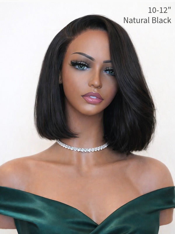 Discover effortless, natural beauty. Shop our Blunt Cut Glueless Wig 5x5 Swiss HD Pre-Cut Lace Bob (10-12" Invisible Knots) today!