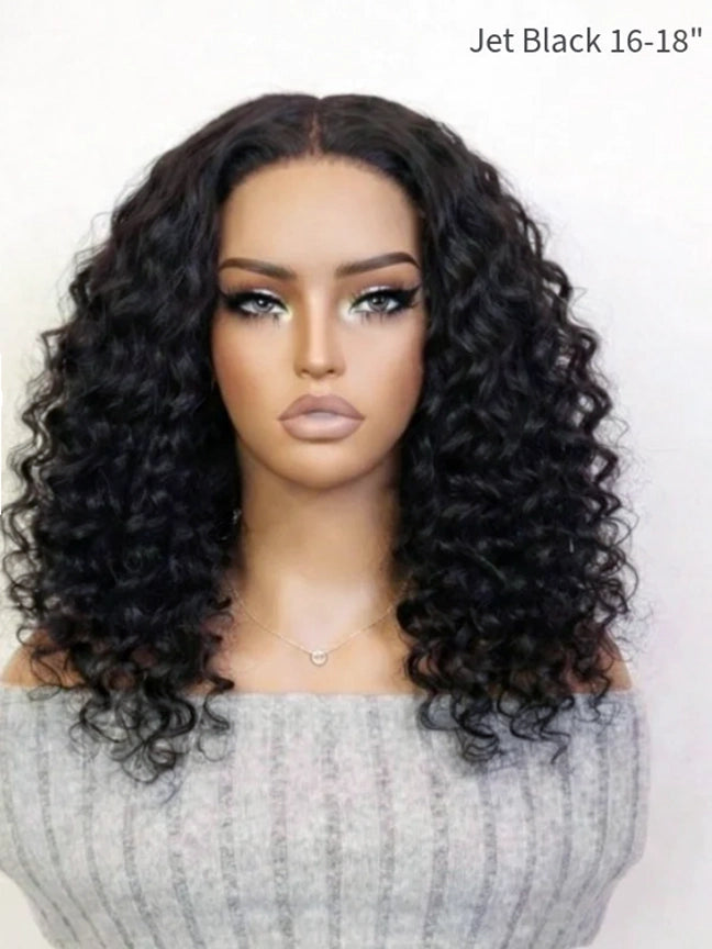 Designed for the modern woman, this perfect "Ready To Go Convenience" solution boasts a captivating Deep Wave texture in a rich Jet Black hue, paired with the superior transparency of 5x5 Swiss HD Lace. Its Pre-Cut Lace Design (for glueless wear) and Invisible Knots ensure a truly undetectable hairline that blends seamlessly, making it your go-to for a natural yet striking transformation with beautifully defined curls.