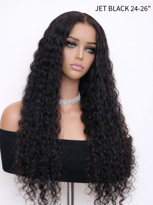 Discover effortless, natural beauty. Shop our Jet Black Deep Wave Glueless Wig (5x5 Swiss HD Lace, Invisible Knots) today!