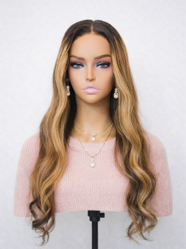 Discover effortless, natural beauty. Shop our Blonde Highlights Loose Body Wave Glueless Wig (5x5 Swiss HD Pre-Cut Lace, 180% Density, Invisible Knots, Sun-Kissed) today!