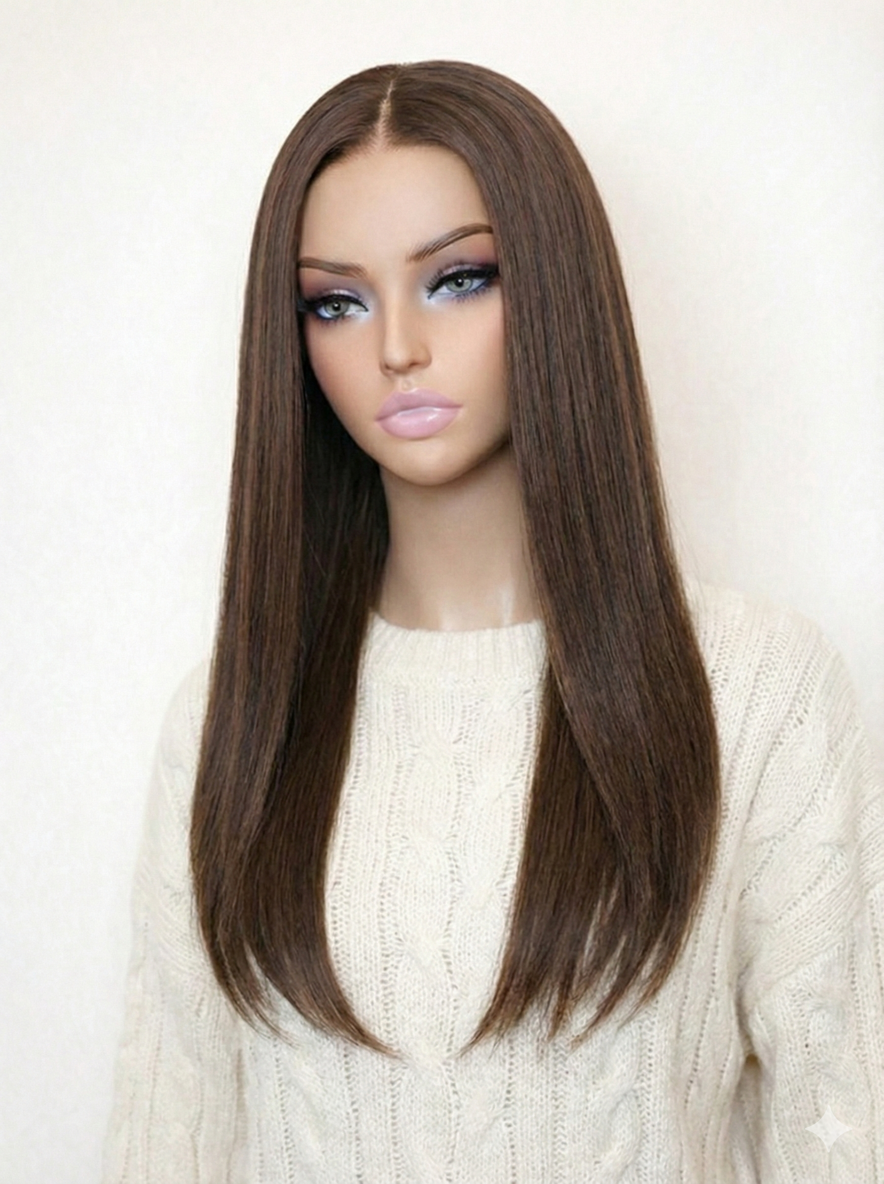 Discover effortless, natural beauty. Shop our Espresso & Reddish Brown Silky Straight Glueless Wig (5x5 Swiss HD Pre-Cut Lace, Invisible Knots) today!